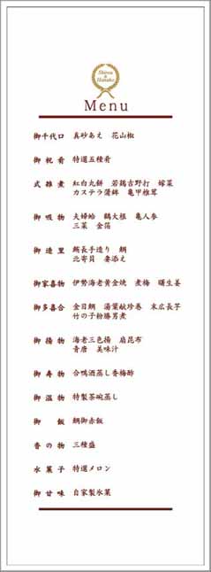 エクセルで作る飲食店メニュー結婚式メニュー表テンプレート。