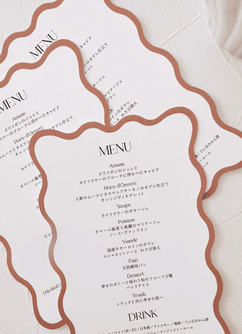 結婚式のメニュー表を手作りしよう!デザイン実例や作り方を紹介結婚ラジオ結婚スタイルマガジン。