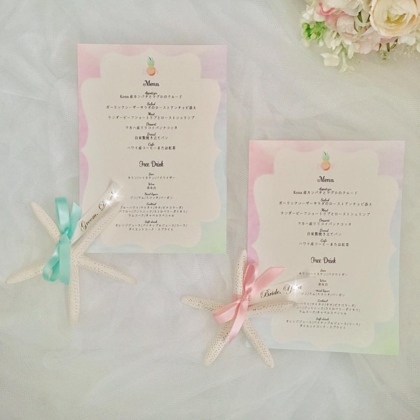 人気!結婚式 メニュー☆G A4 1 3サイズ20部~mierakue wedding。