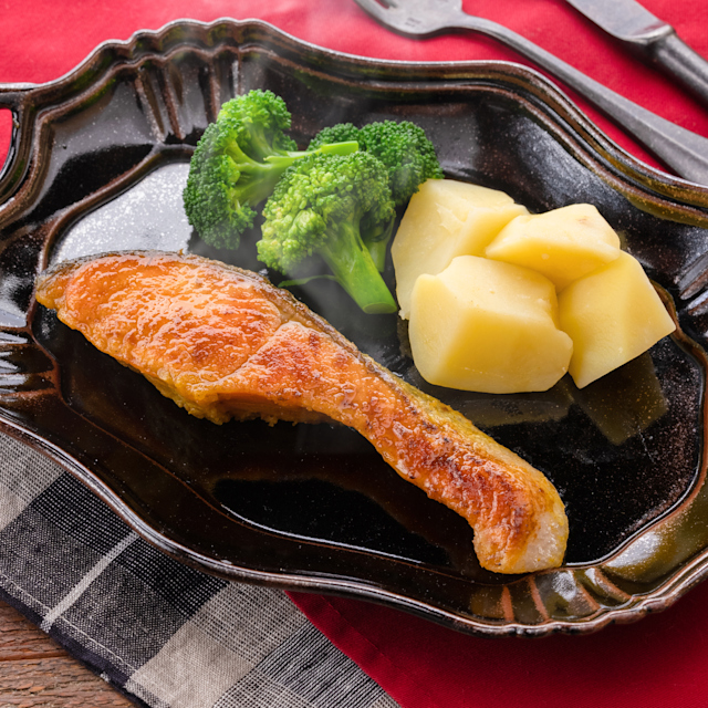 ごはんがすすむ♩鮭とじゃがいもの甘辛味噌バタ。