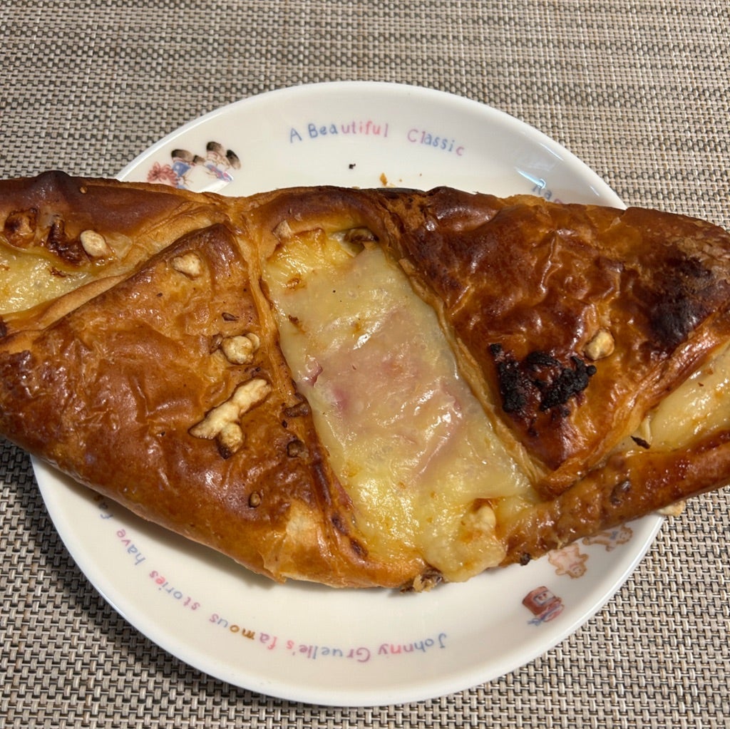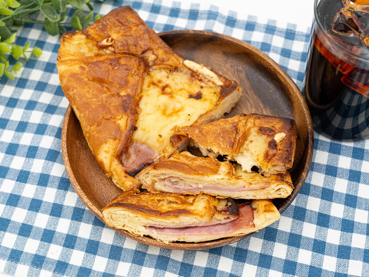コストコ・フードコート クロワッサンハム&チーズはクロワッサン生地の巨大クロックムッシュトコトコあけみん。