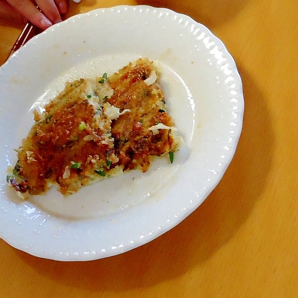 ランチに★残ったご飯でお好み焼き〜♪。