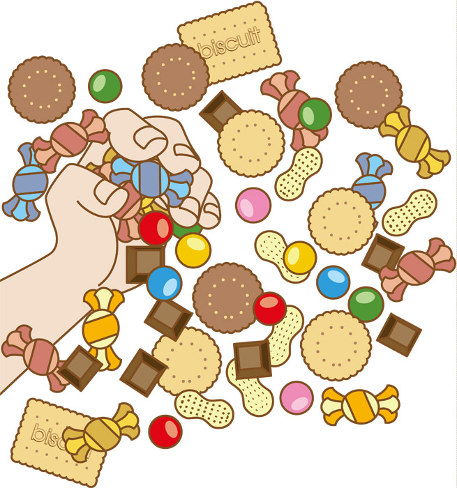 フリーイラストお菓子のつかみ取りパブリックドメインQ:著作権フリー画像素材集。