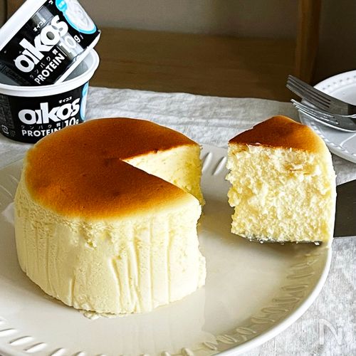 材料4つで超ヘルシー!オイコスのスフレチーズケーキ風 レシピ・作り方ヘルシート。