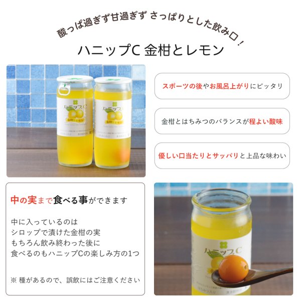 ハニップC 金柑とレモン 果実入り清涼飲料水富美の里。