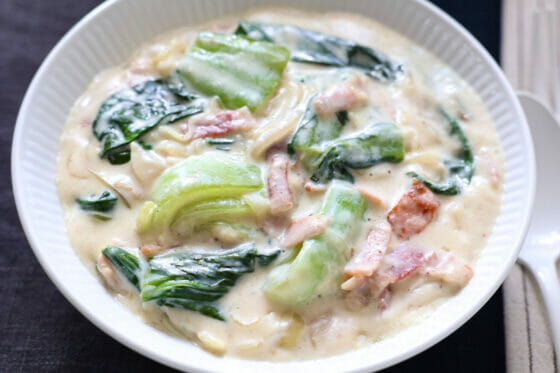 チンゲン菜のクリーム煮。