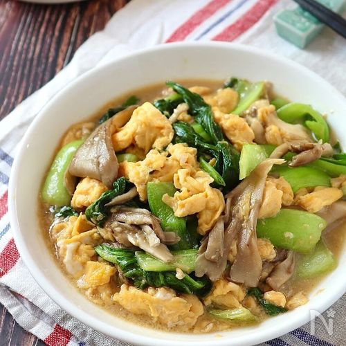 青梗菜と卵のふんわりオイスターあんかけ。