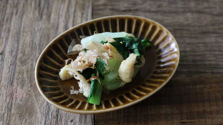 白だしで簡単・時短副菜おかず!青梗菜と揚げのおひたし – にぎりっ娘。の公式サイト。