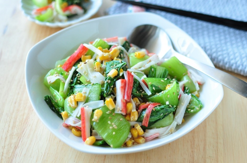 レンジで簡単。チンゲン菜とカニカマの中華風和え物のレシピセブンプレミアム公式。