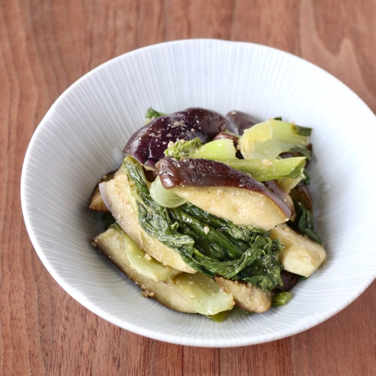 なすと青梗菜のごま甘酢和え。