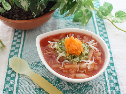 離乳食中期しらすとブロッコリーの洋風うどん。