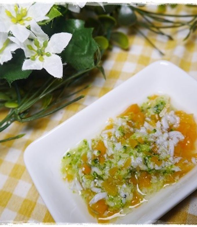かつお出汁で作るカボチャとブロッコリーのサラダ 離乳食まいにち、おだし。