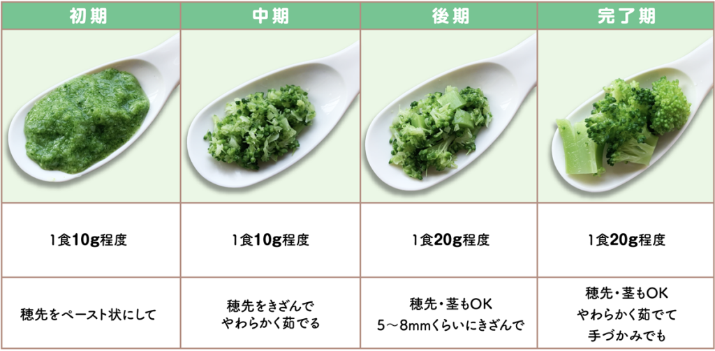 離乳食のブロッコリー初期・中期・後期・完了期の進め方とレシピ、保存方法もHugKum はぐくむ。