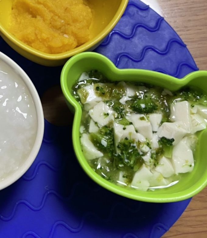 離乳食中期 ブロッコリーと豆腐のお粥レシピ - 離乳食初期・中期・後期の献立&レシピ~年子母ちゃんの育児日記~。