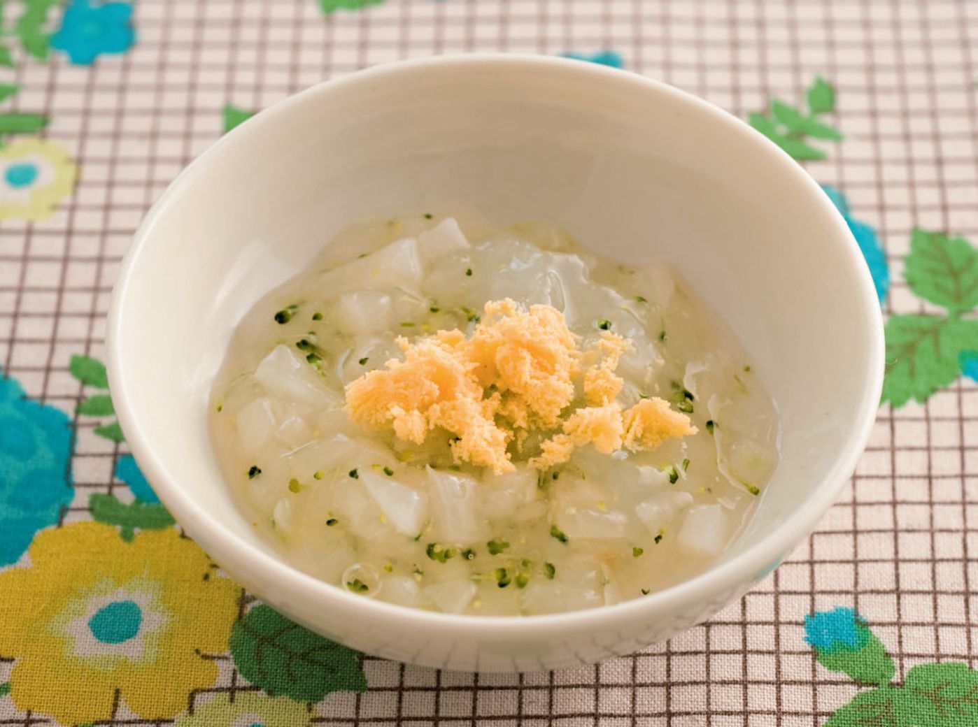 離乳食・中期 豆腐とブロッコリーのくず煮。