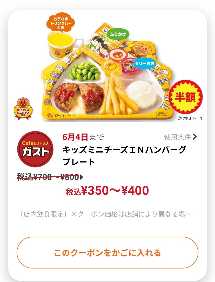 最新 ガスト キッズメニュー クーポン99円クーポンはいつ?https:www.hatsumamayuki.com。