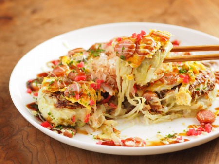 小麦粉と長芋で作るふわふわお好み焼。