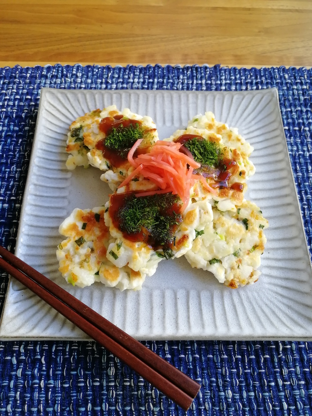 薄力粉と長芋で作る!ふわふわミニお好み焼き。