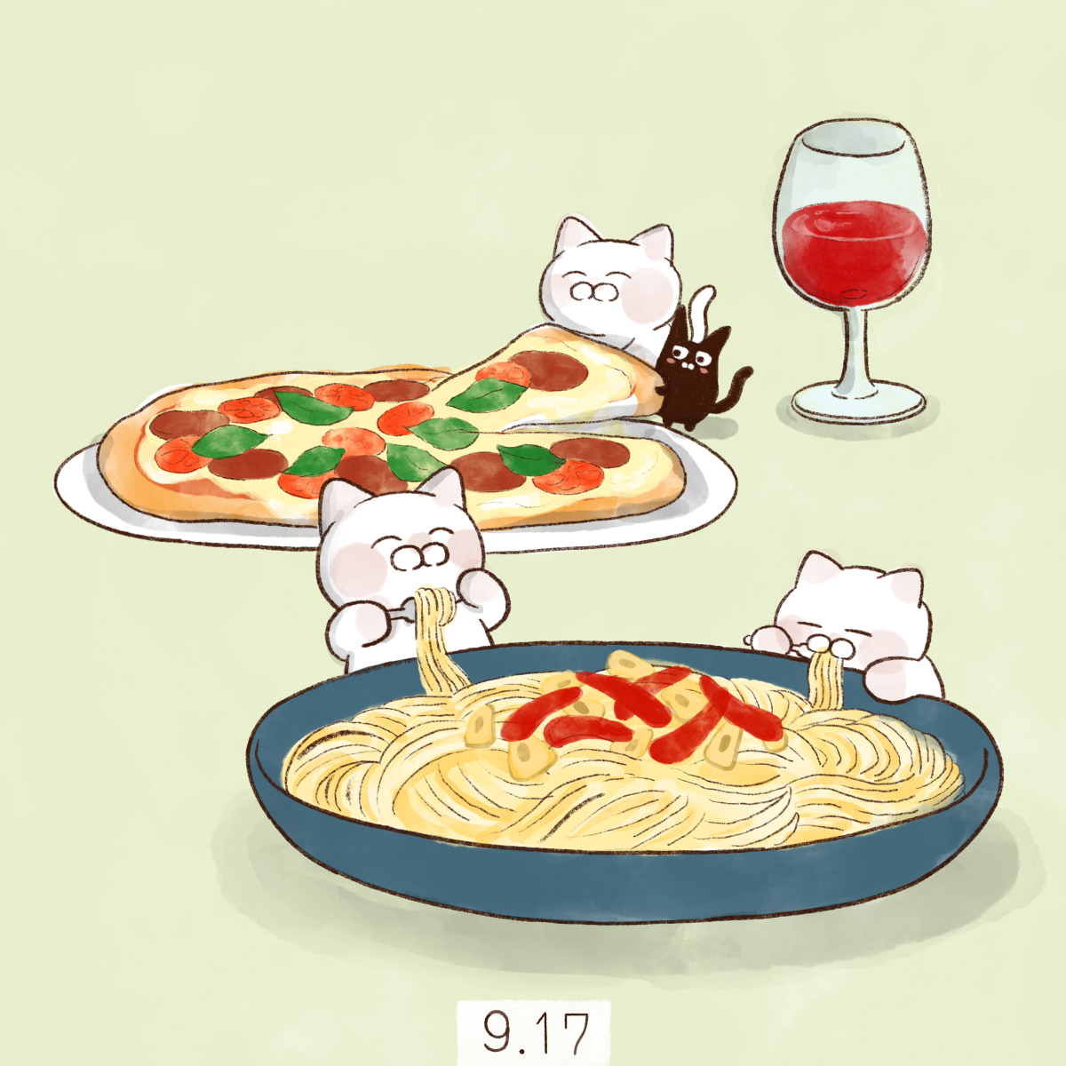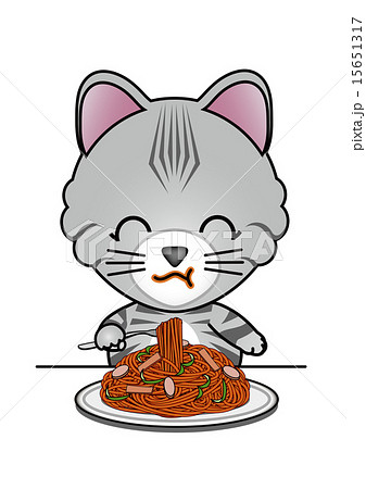 スパゲッティを食べる猫のイラスト素材15651317- PIXTA。