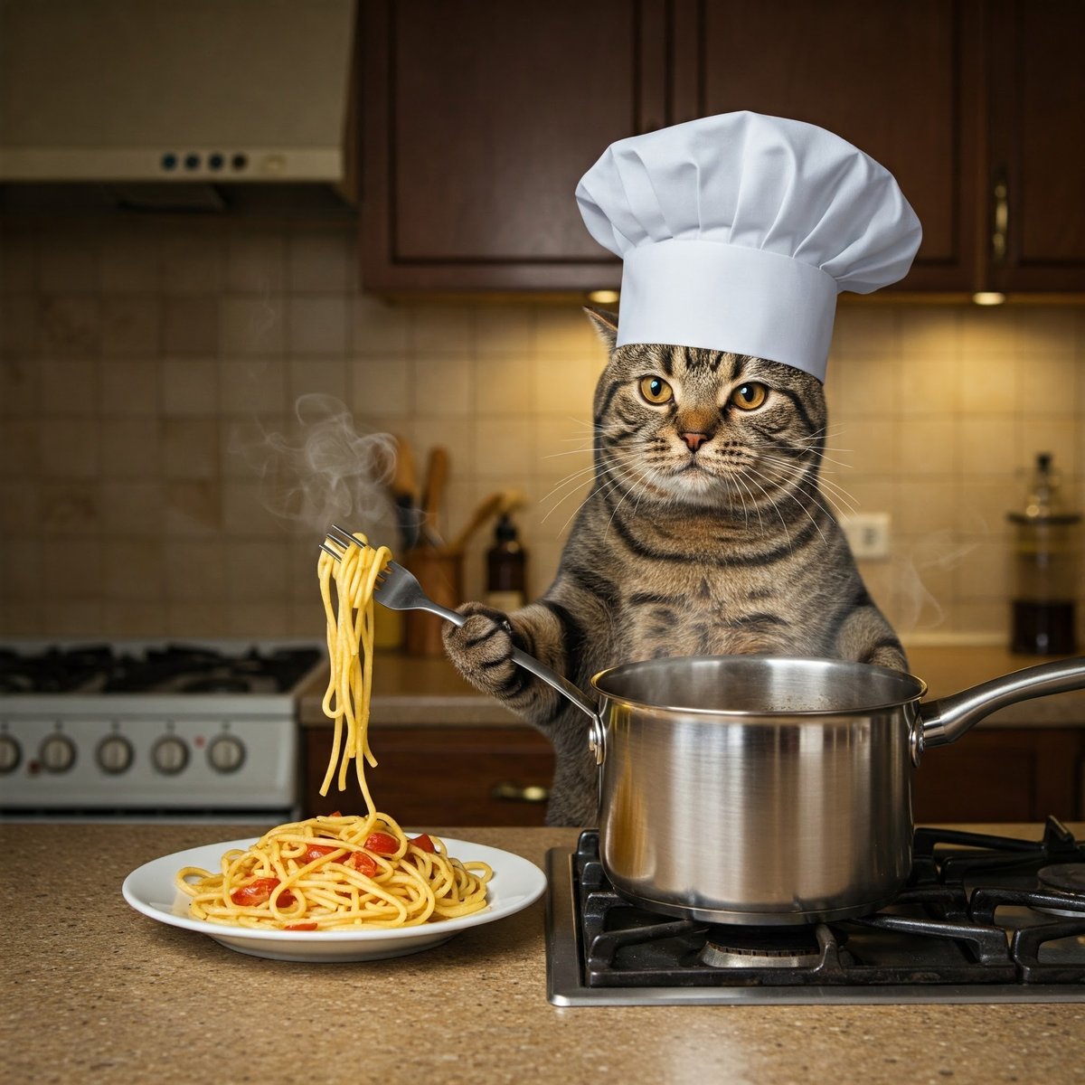 踊る猫爆弾: パスタでクルクル🍝🎶。