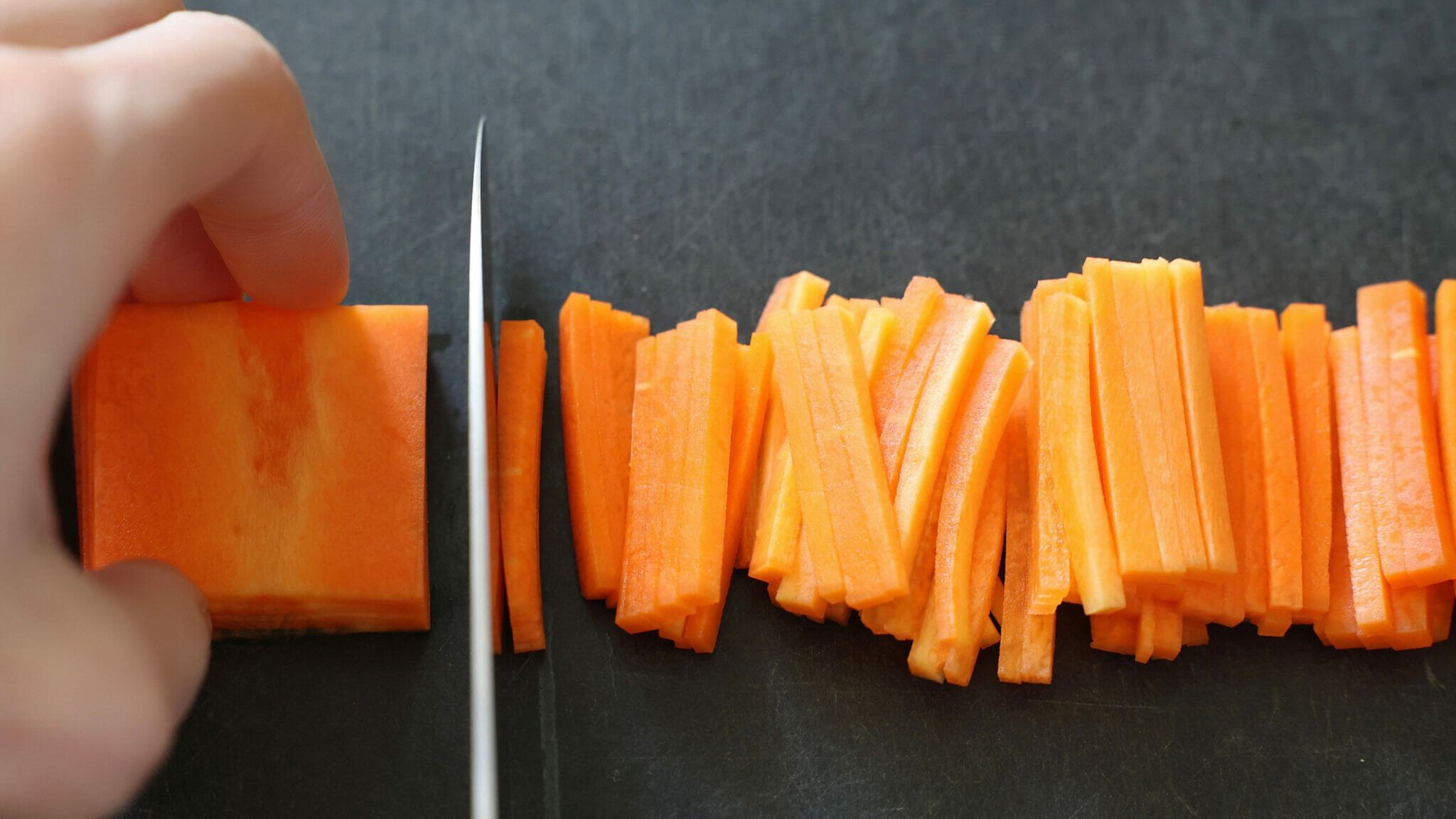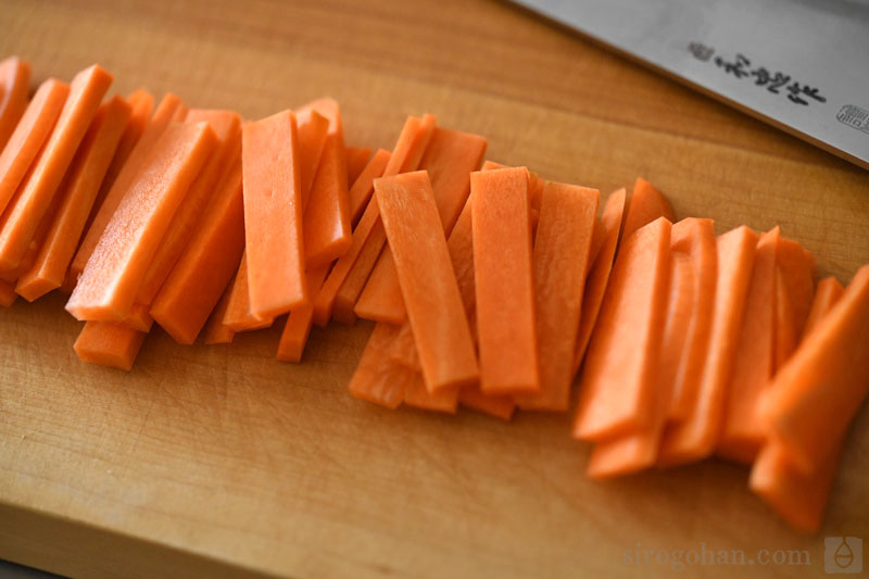 料理の基本! にんじんの拍子木切り。