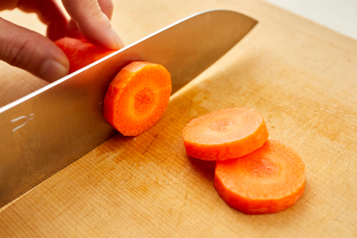 にんじんの千切り: 斜めに薄切りにするコツとレシピ。
