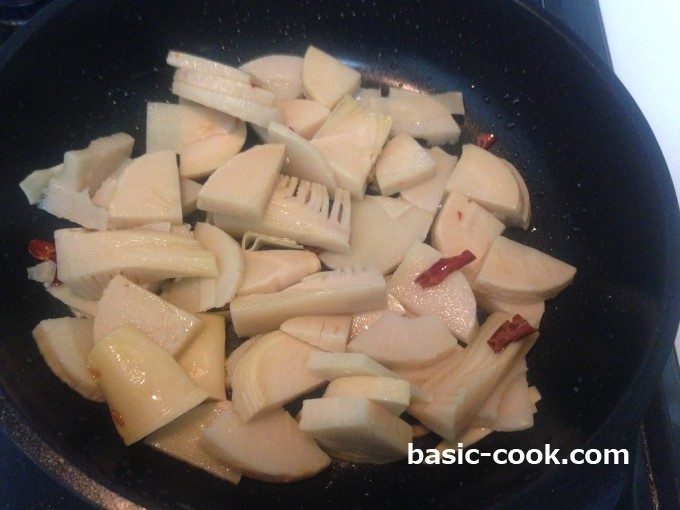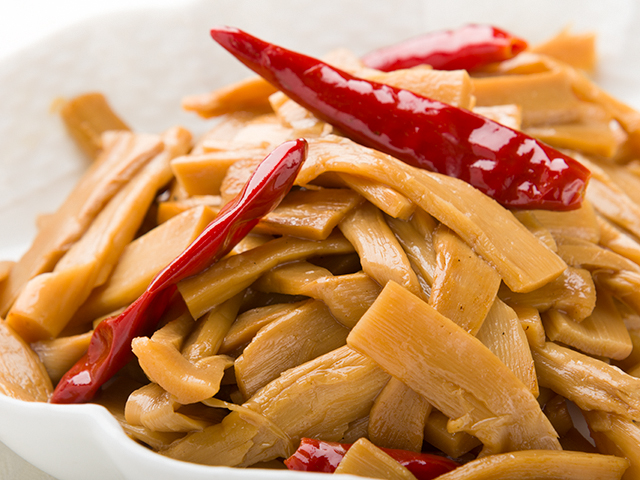 旬のレシピ メンマ風♪四方竹のピリ辛中華煮。