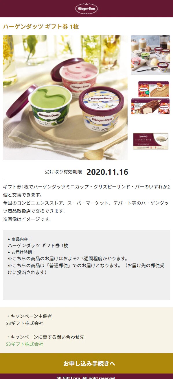 ハーゲンダッツギフト券4枚入スイーツ&デザート特集景品ゲットクラブ。