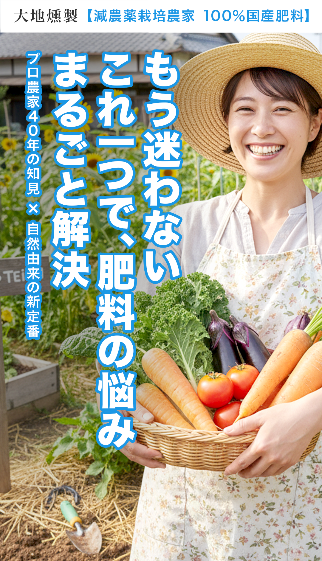 魚の燻製で育てる土”。無添加・国産100%のハイブリッド肥料「大地燻製」、日本初の一般流通開始。日本農業新聞。