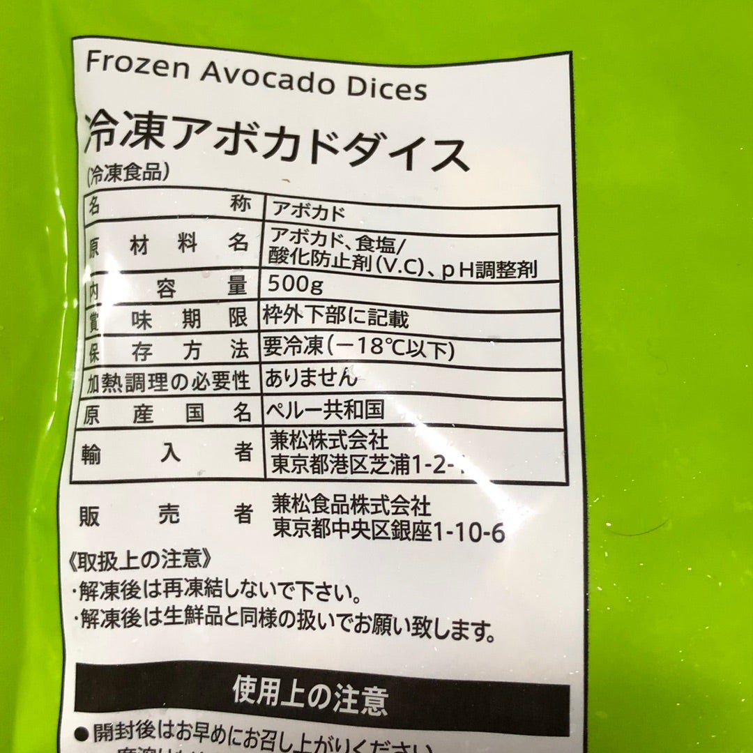 業務用アボカドダイス 500g ペルー産 冷凍業務用スーパーハッピーモ。