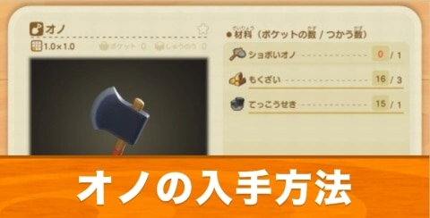 あつ森 オノの入手方法とDIYレシピ一覧 あつまれどうぶつの森AppMedia。