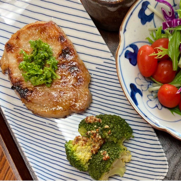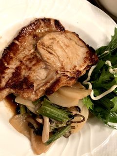 柔らか♪厚切り豚ロース肉の塩こうじ焼き。
