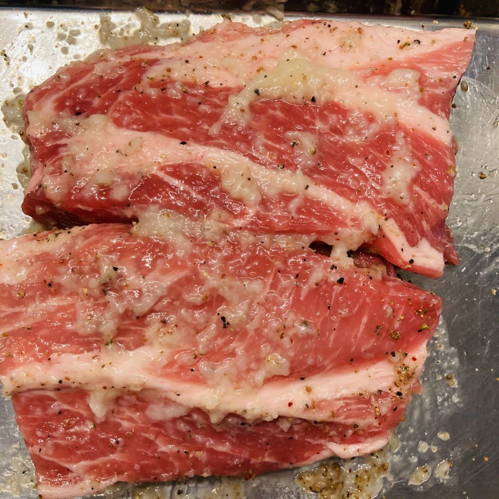 パサつきがちな分厚い豚ロース肉が 塩麹でやわらか~♡「やみつきガリバタポークステーキ」に挑戦!2023年12月23日- エキサイトニュース。