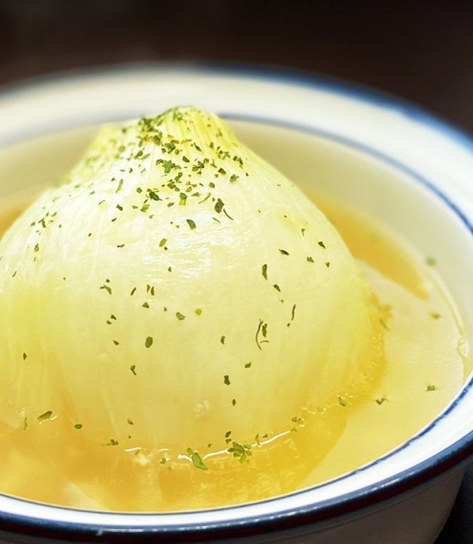 絶品!新玉ねぎの丸ごと肉詰めスープ。