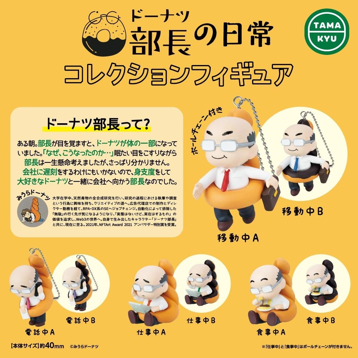 新商品 NFT発のキャラクターがフィギュア化!「ドーナツ部長の日常 コレクションフィギュア」が本日より全国のカプセルトイコーナーにて順次販売開始。株式会社ブシロードのプレスリリース。