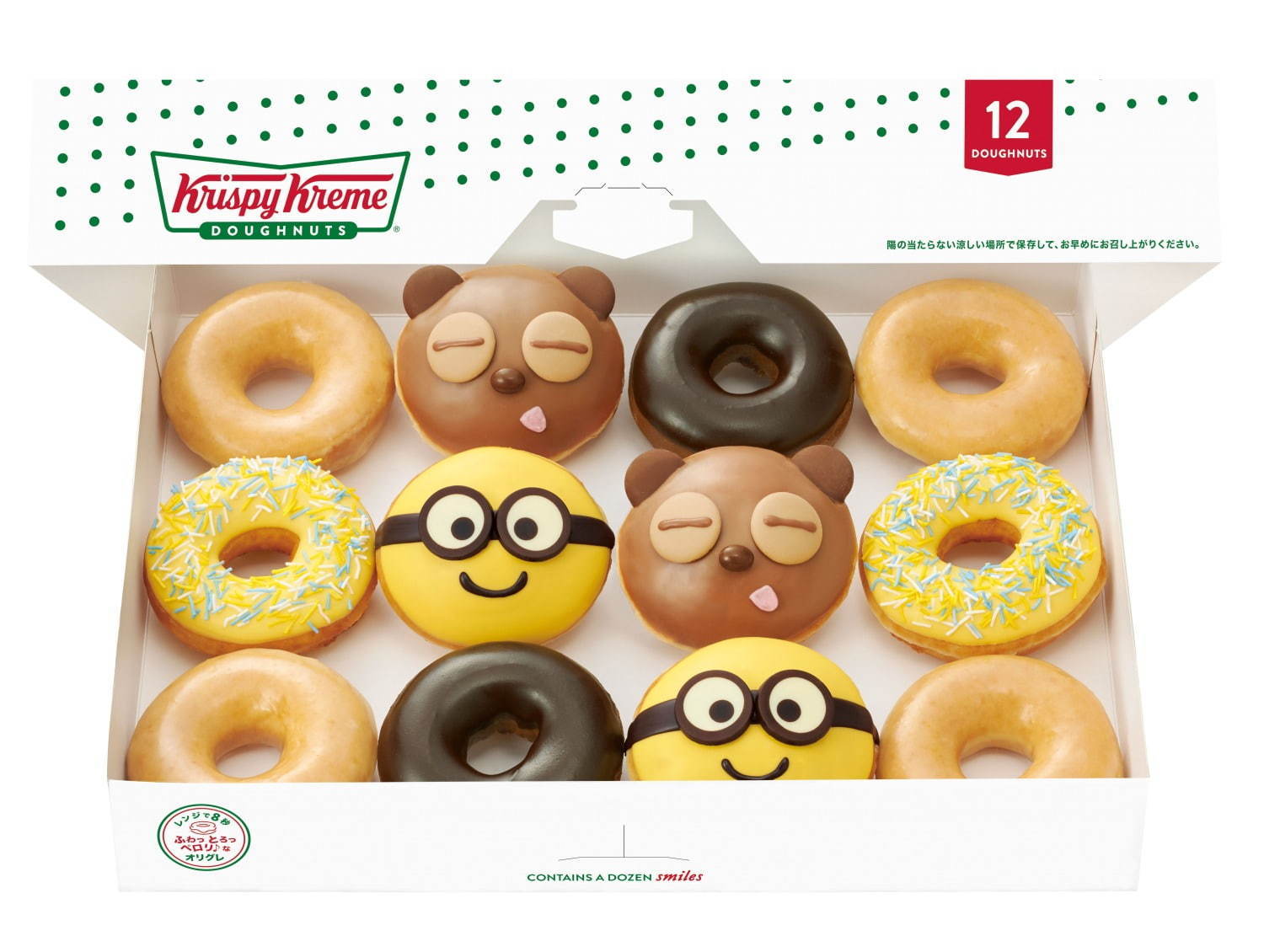 クリスピー・クリーム・ドーナツ×ミニオン、ボブとティムの顔を描いたバナナ&キャラメルドーナツ - ファッションプレス。