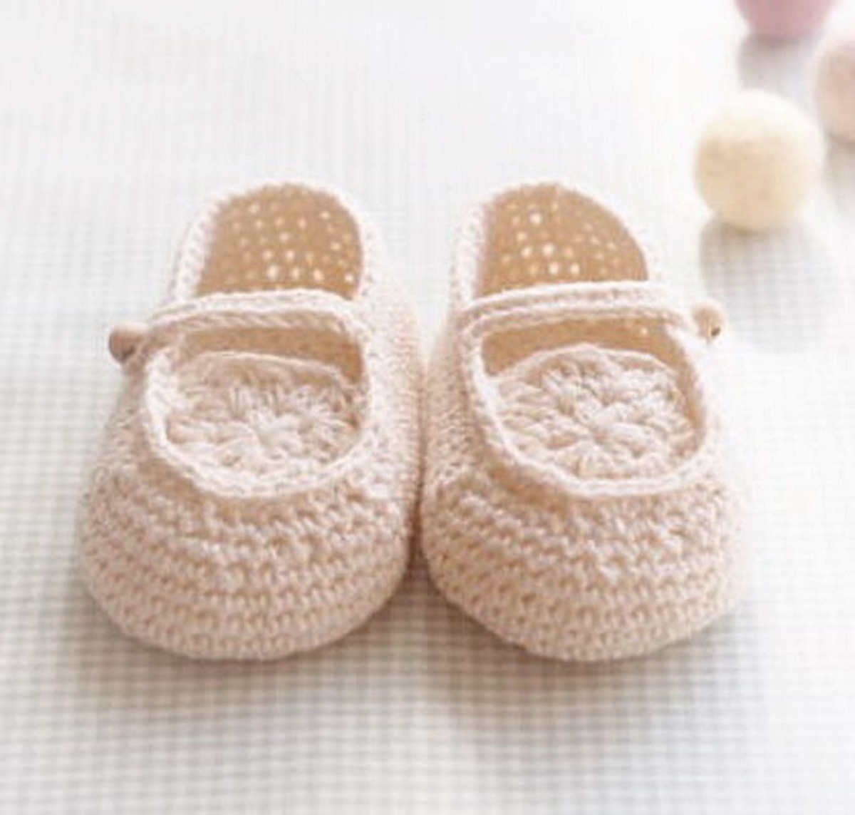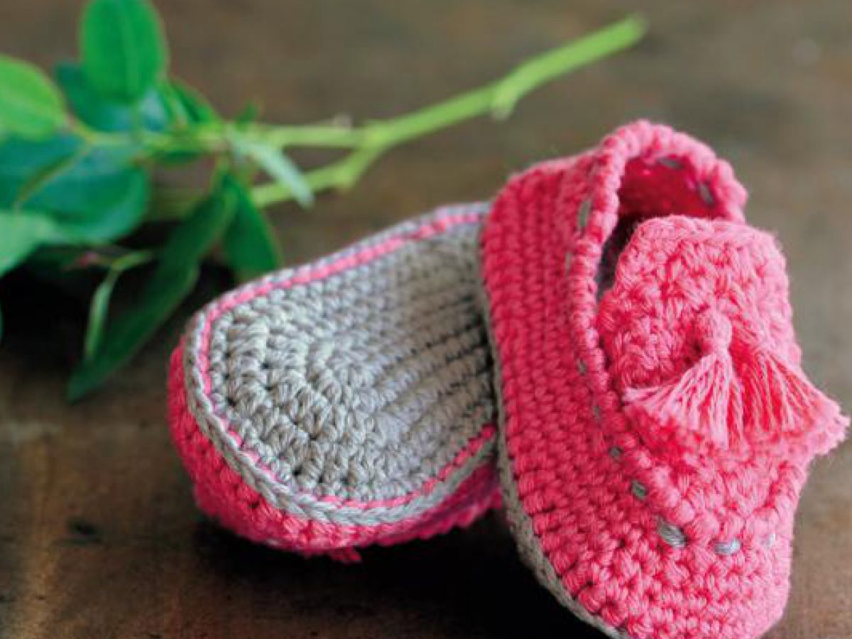 かぎ針編みのかわいいベビーシューズ。