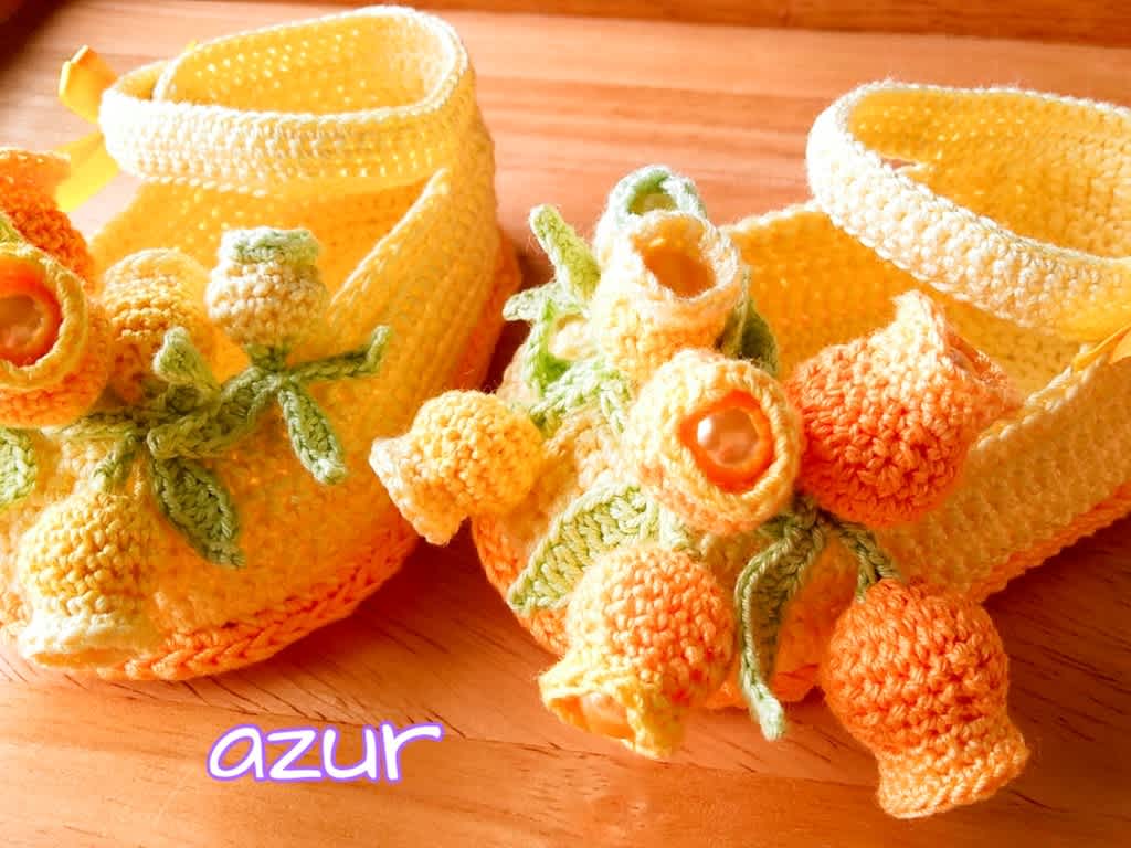 かぎ針編みで編むベビーシューズ-きゃろりずむ。