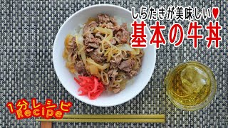 1分レシピしらたきが美味しい 基本の牛丼 - YouTube。
