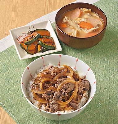 牛丼 がんものおかず汁フレッシュサラダ 食材宅配のヨシケイ 夕食ネット レシピ・メニュー・献立付き。