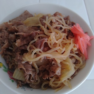絶品つゆだく牛丼 糸こんにゃくでかさ増し。