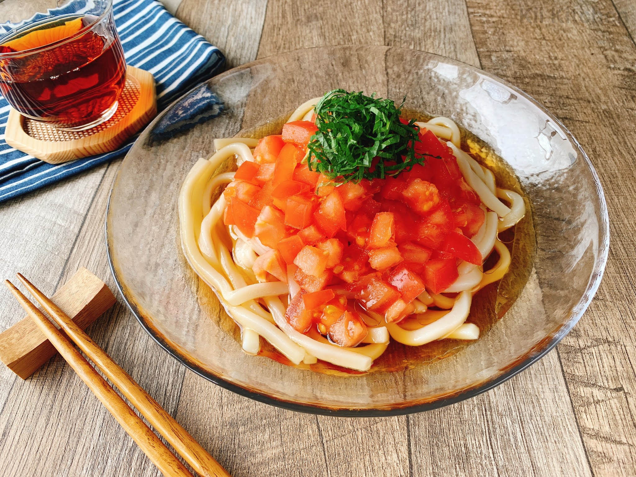 簡単5分ごはん たっぷりトマトの冷やしうどん。