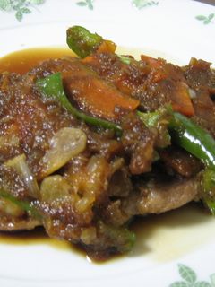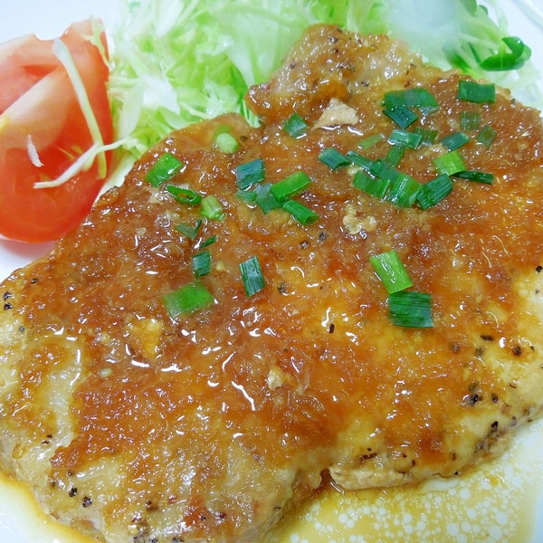 玉ねぎたっぷり和風醤油ソースの四日市トンテキ風。