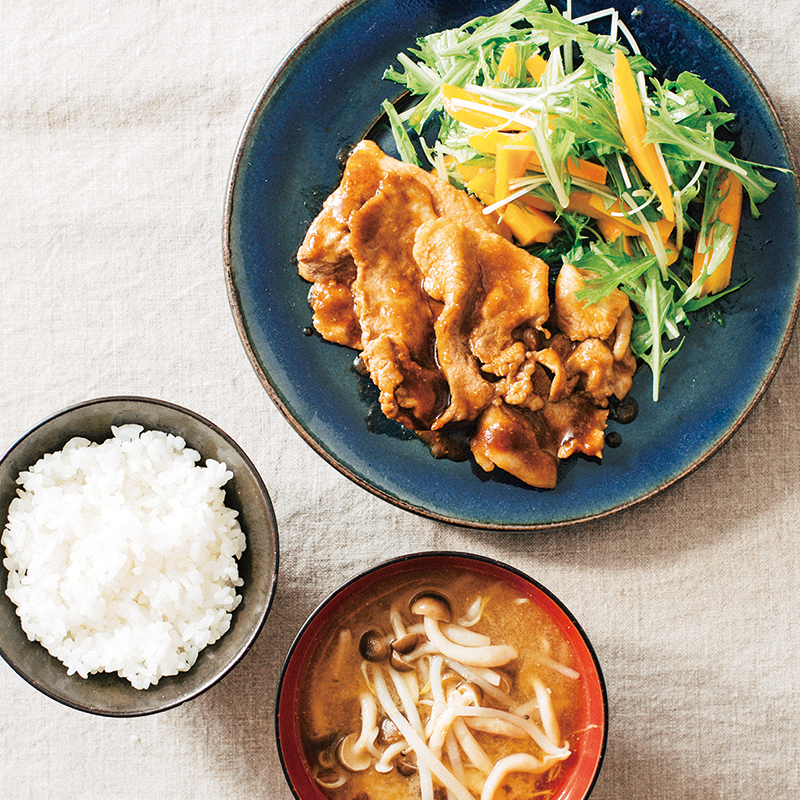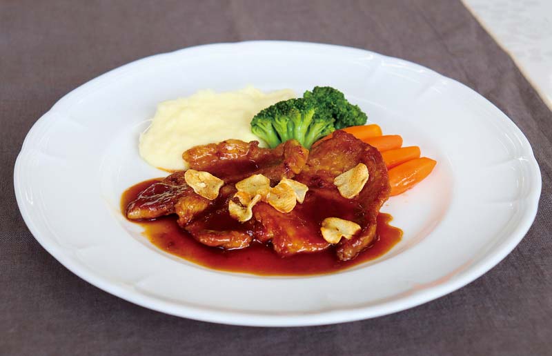 こがしにんにくが効いたコク旨ソースで食べるトンテキ。