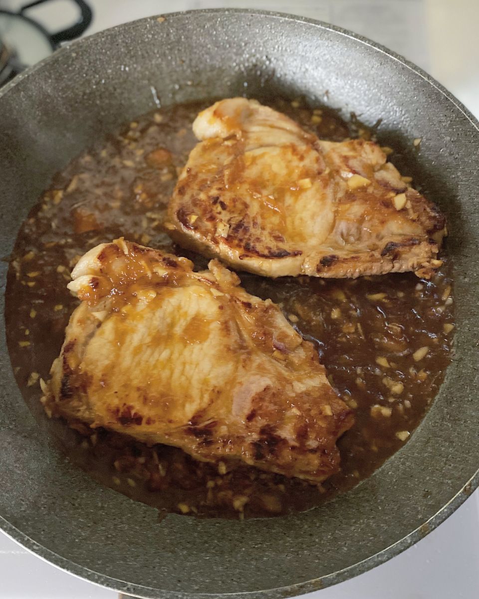 ご飯がすすむ!ガーリック生姜ソースのトンテキ。