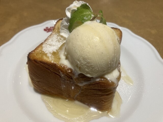 ジョリーパスタの「レッドペッパーオイル」がほしいために行った「ジョリーパスタ」です👍 ブランチと思って行って、どデカい厚切りパンを想像していたら、 デザートの1品の普通サイズでした^^; 妄想して注文してはいけないですね。 でも、とっても美味しかったです。