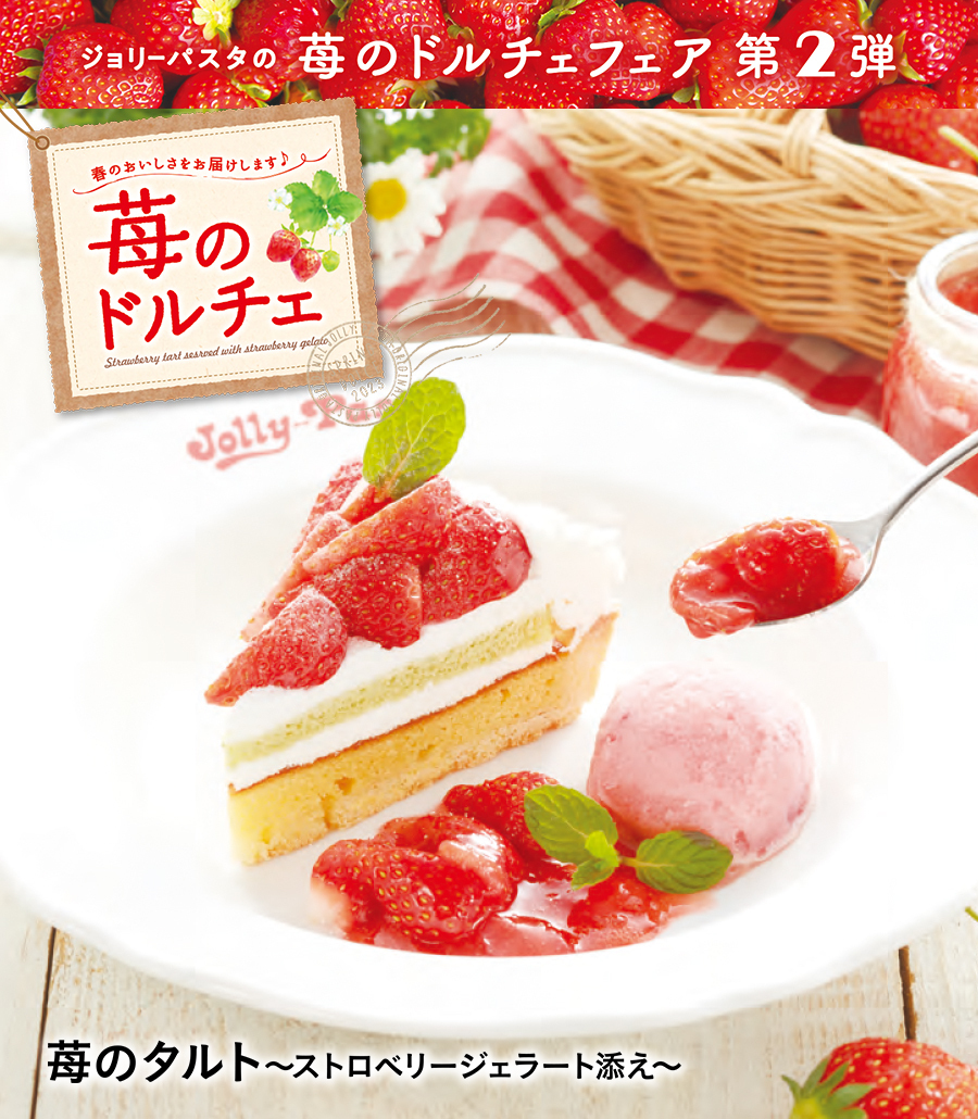 ジョリーパスタ 公式on X: "🍓 🍰 🍓 🍰 🍓 🍰 🍓苺のドルチェフェア 第2弾 『苺のタルト』本日スタート! 🍓 🍰🍓 🍰 🍓 🍰 🍓 アーモンド風味のタルトに、ホイップ、ピスタチオペーストを使用したスポンジをのせ真っ赤な苺をトッピング🍓💕華やかで癒される。