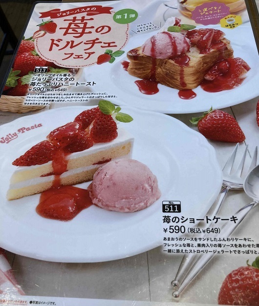 ジョリーパスタ 季節のドルチェ「苺のショートケーキ」と「~スープパスタ~ たっぷり海の幸のブイヤベース」♪ - ランチ 葛飾区。