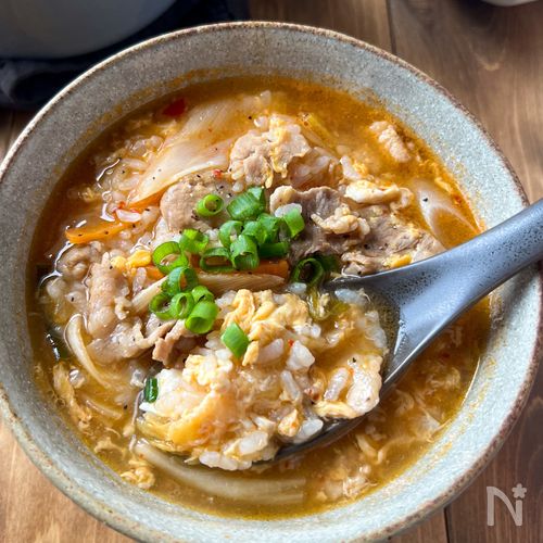 息子大絶賛!冷やご飯で絶品♡︎豚カルビクッパ。
