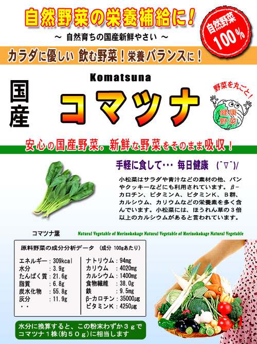 G 送料無料国産 コマツナ 粉末70gやさいパウダー100%野菜 粉末小松菜こまつな 森のこかげ健やかハウス。